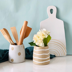 Ceramic Chopstick Utensil Holder Rests Cylinder Bucket Basket Knife, Fork and Spoon Storage