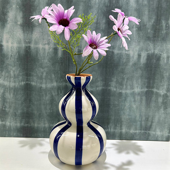 Nordic Moderne Kleine Kalebas Vaas Handgemaakte Blauwe Lijn Geschilderde Keramische Eenvoudige Huisdecoratie Glanzende Afwerking Bruiloft Hotels Vaas