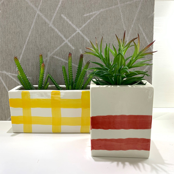 Home Decor Vierkante Handgeschilderde Geruite Grain Keramische Bloem Succulent Wall Opknoping Planter