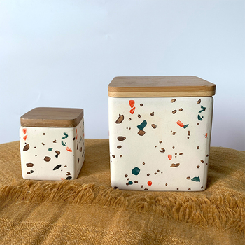 Bán buôn phổ biến tay sơn vuông gốm nhà bếp Canister lọ với nắp tre